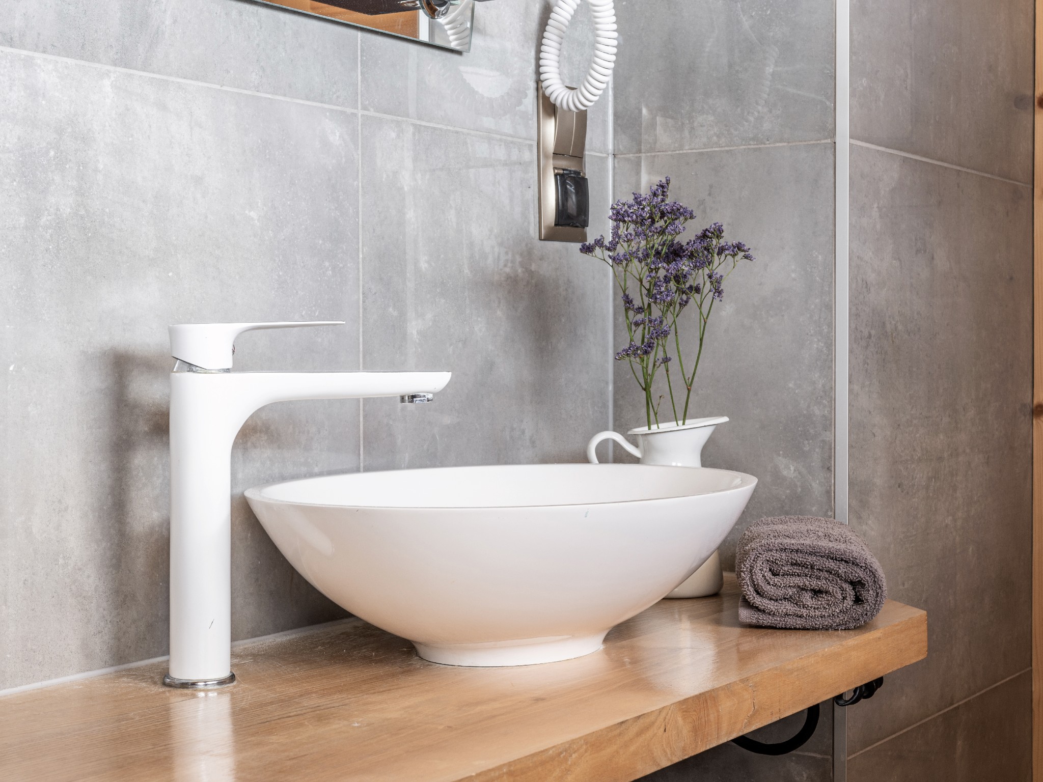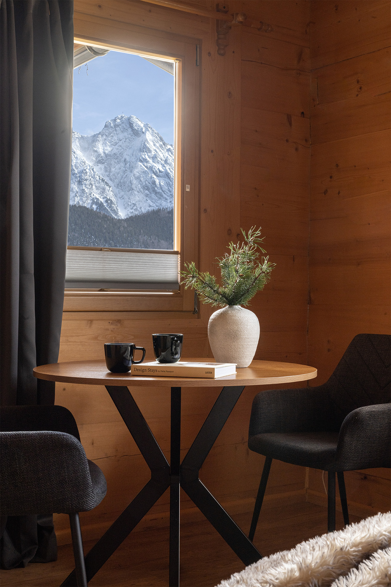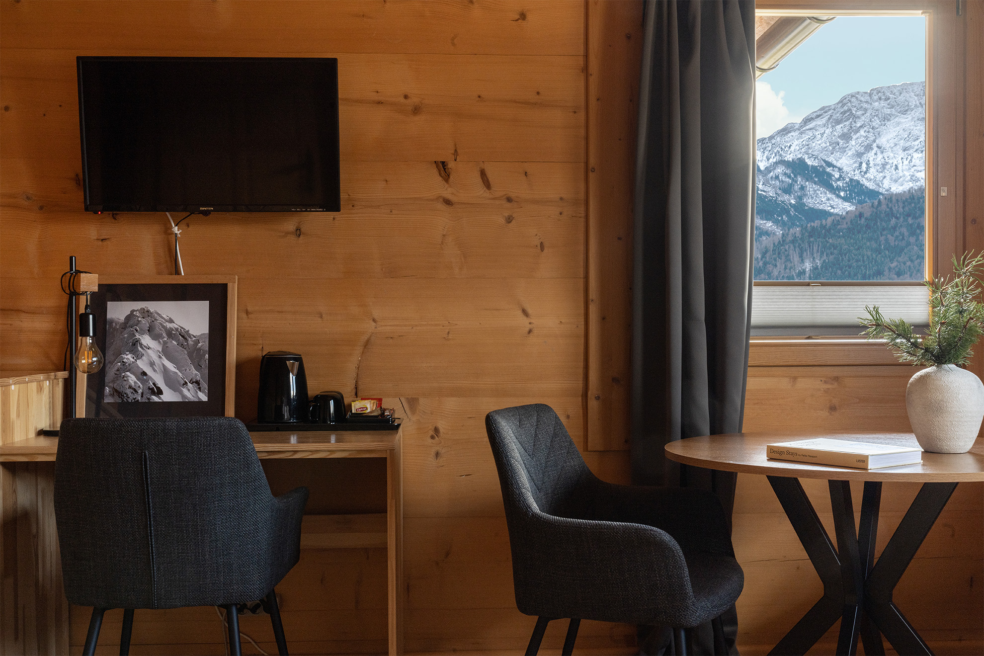 Klimatyczny, przestronny pokój dwuosobowy. Prosty, minimalistyczny wystrój podkreśla piękno tradycyjnych elementów, charakterystycznych dla góralskiej architektury.